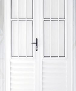 MATERIAL: Folha em Madeira Branca e Batente em Alumínio 25 com Pintura Eletrostática Branca