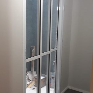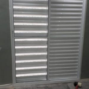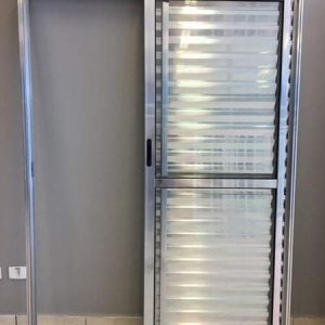 MATERIAL: Folha em Madeira Branca e Batente em Alumínio 25 com Pintura Eletrostática Branca